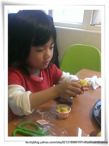 早上媽媽我跟歐寶在做蝴蝶酥餅,然後去享趣玩做貓頭鷹油畫