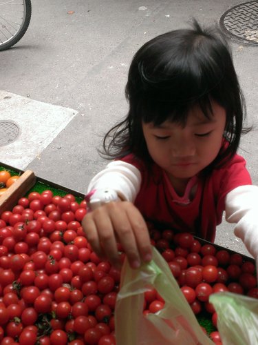 早上歐寶陪我去市場,他現在都會幫忙挑蕃茄,回到家後我們就在做南瓜麵包