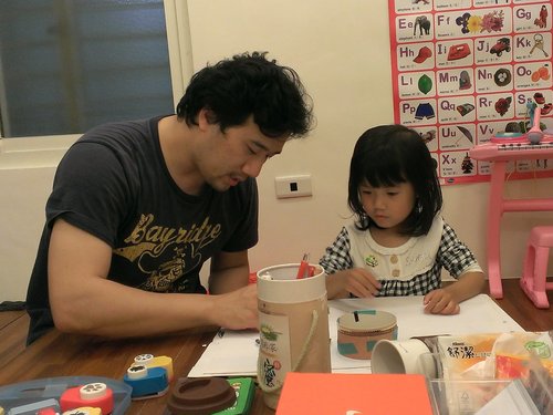 媽媽我在房間睡午覺,拔拔陪歐寶在遊戲房玩,結果我睡醒後走到遊戲房看到