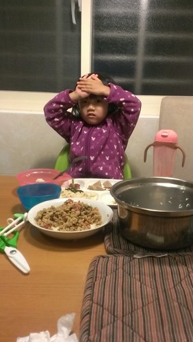 晚餐歐寶擺這個pose讓媽媽我拍照