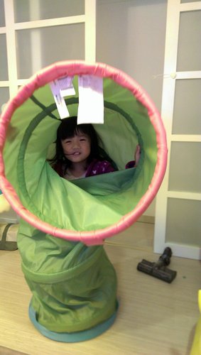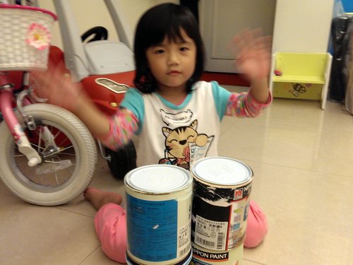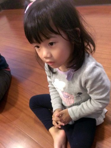 早上上體能課,照片中的歐寶正在將拔拔放在小倉庫的桶子拿出來拍打