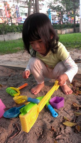 下午睡完午覺帶歐寶去秀山國小挖沙