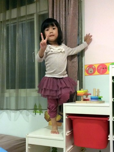歐寶其實很愛漂亮,穿著漂亮褲子給媽媽我拍照