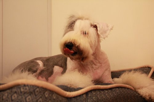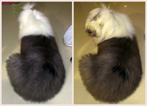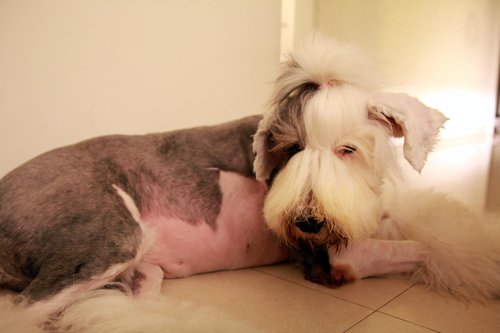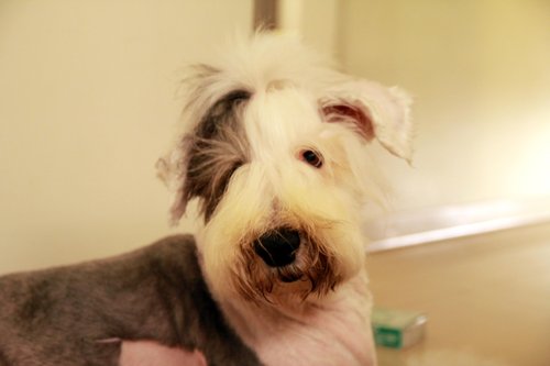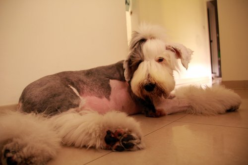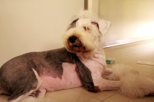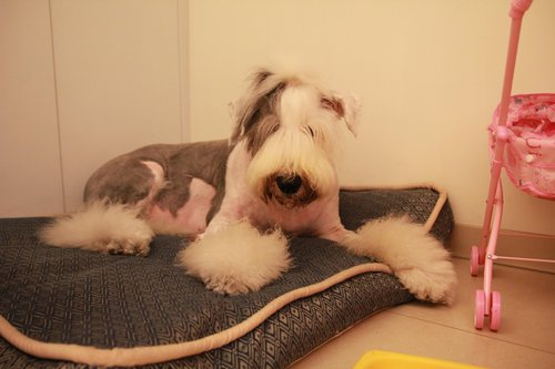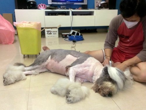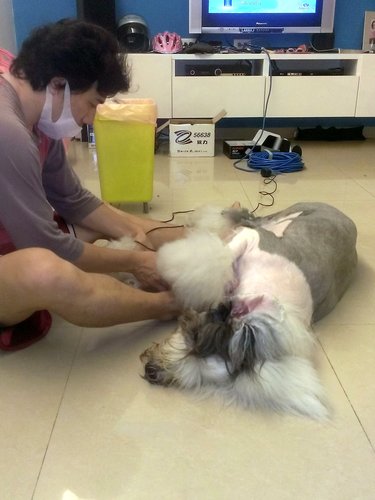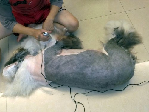 拔拔前一天先幫Olay將肚子的毛嚕掉,第二天再幫他嚕全身的毛