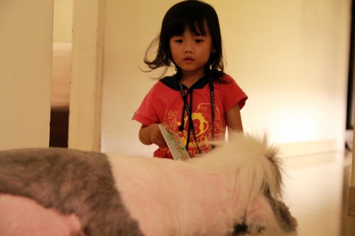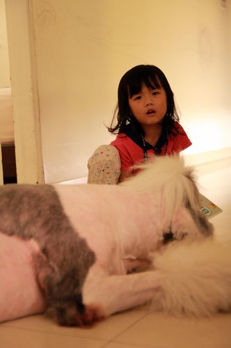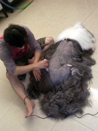 是請拔拔幫Olay剃毛,因為拔拔感冒不舒服,所以共分三天才幫Olay剃好,剃