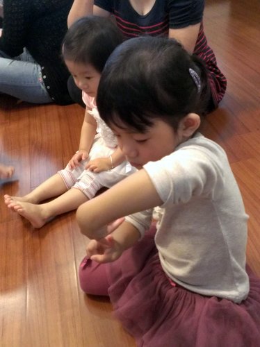 星期一早上帶歐寶去上英文課,這天歐寶上課依舊很認真~至少媽媽我跟老師