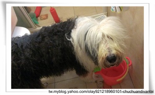 一個月沒洗,星期一下午天氣好,趁著歐寶睡午覺了,趕緊帶Olay去洗澡,只