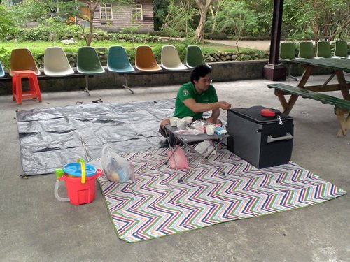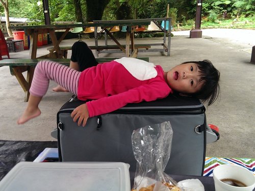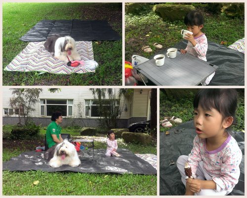 一開始露營的客人還沒離開,我們選在有樹蔭的草皮鋪上野餐墊休息、野餐