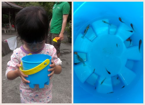 歐寶跟拔拔抓了很多小魚跟小蝦