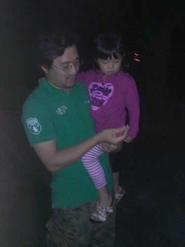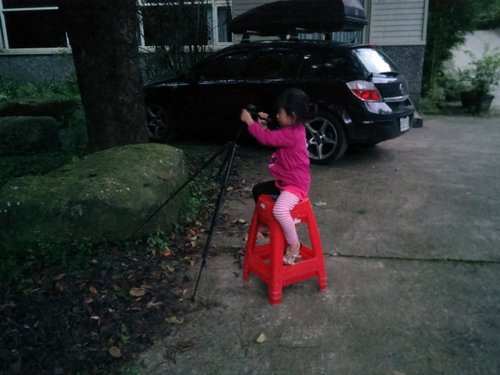天色黑了後準備腳架,要來拍螢火蟲囉~歐寶來湊熱鬧,他說他會調腳架!