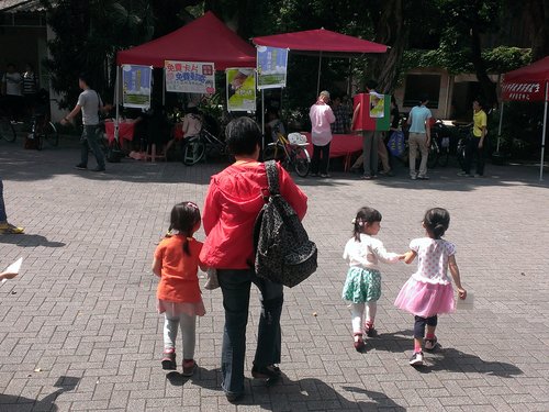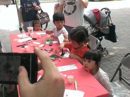 吃完午餐,剛好鹿鳴堂對面有「母親節免費卡片及免費寄送」活動,這群小孩