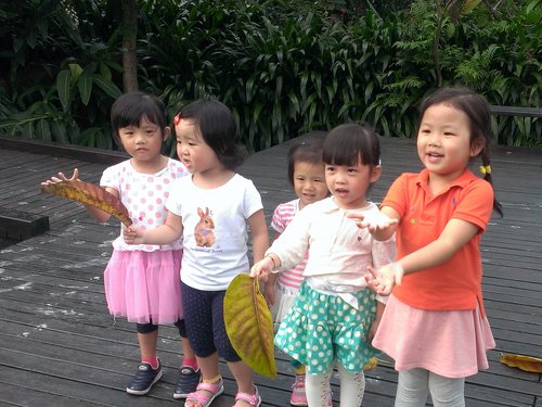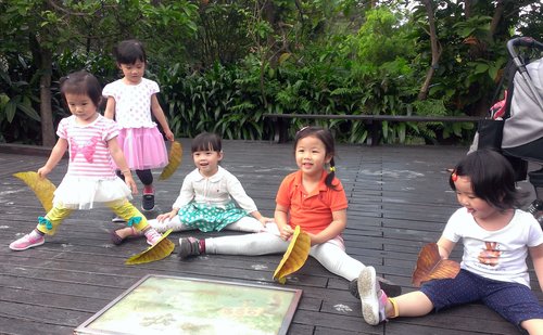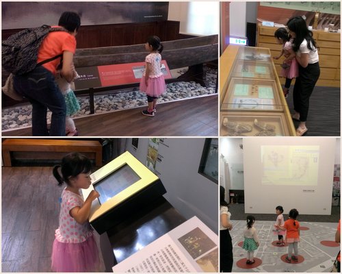 餵完魚走去巧潔小姨婆服務的人類學博物館~剛好開始下雨,這群小孩拿起大