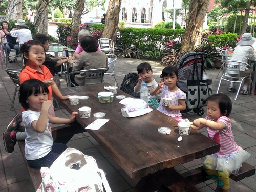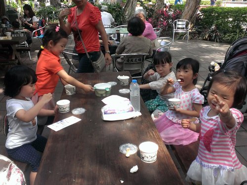 投完信後來福利社吃冰淇淋、鬆餅。我們這群媽媽們也很好笑,看到大家秒殺