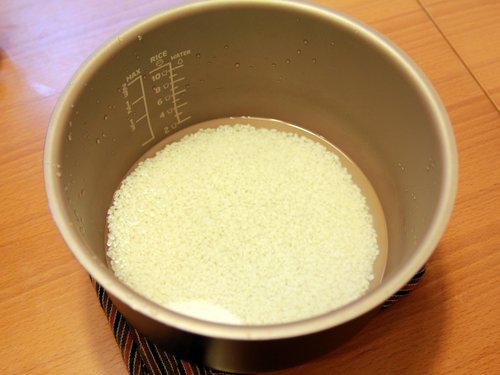 白米洗淨後我先泡了30分鐘,然後放進萬用智慧鍋用米飯功能,只要煮14分鐘