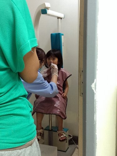 態度很差!結果這次帶歐寶去塗氟並做追蹤,發現那顆牙齒已經蛀蠻大了,不