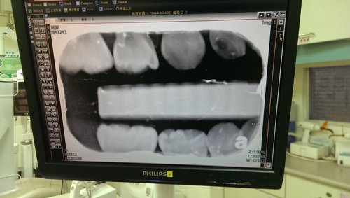 去年12月底就發現歐寶右下顎第一臼齒有小黑點,帶歐寶到醫院看牙齒,當時