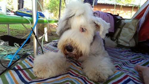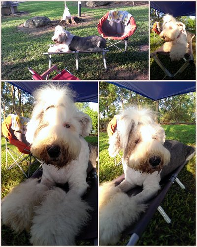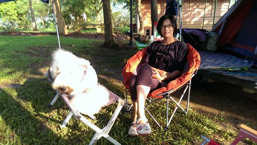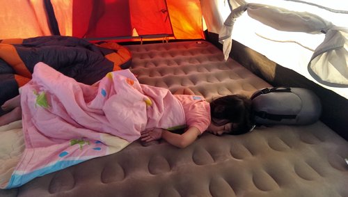 我們大家都起床了,只剩歐寶還在帳棚裡睡覺!