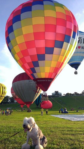 鳥在國際上的首飛喔~我問歐寶你喜歡那個熱氣球?歐寶的答案馬上從「心型