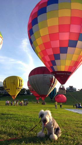 忍不住多幫Olay跟後方的熱氣球拍照留念