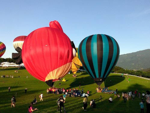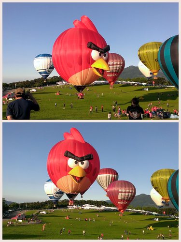哇~這天又多了新的熱氣球,憤怒鳥造型及藍黑條紋的熱氣球!聽說這是憤怒