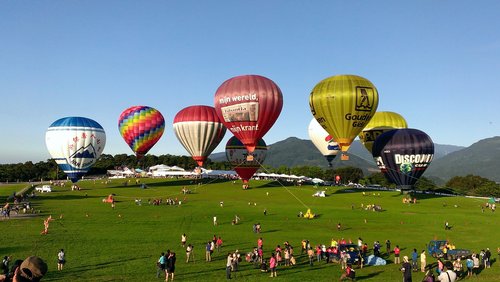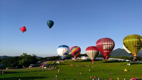 這天早上除了有熱氣球繫留活動外,還有熱氣球自由飛行活動喔~會場一大早