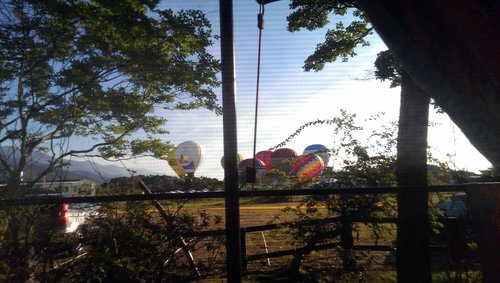 看完憤怒鳥我們又走回營地,這是從我們帳棚裡拍的會場熱氣球照片~其實躺