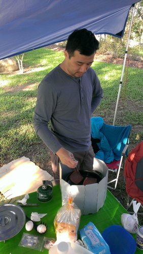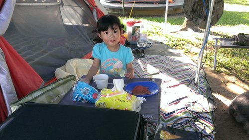 球活動,所以4點多在帳棚裡就不斷聽到「大會報告」一些準備事項,我們除了