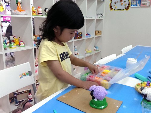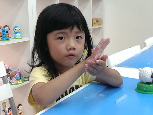 到第二天早上還是很乖就可以去做黏土!第二天早上起床後到下午午覺時間