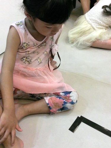 繼續複習之前的英文字母K~N,用色紙讓小朋友拼出英文字母的形狀