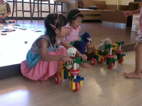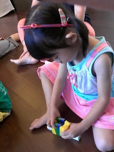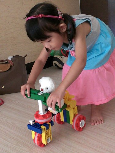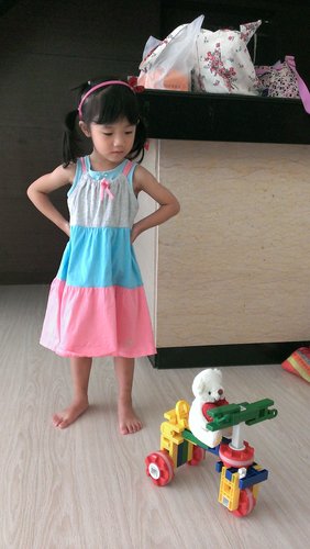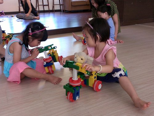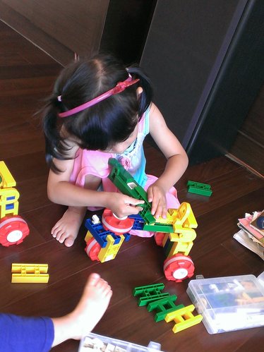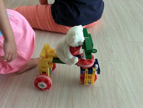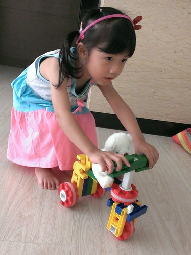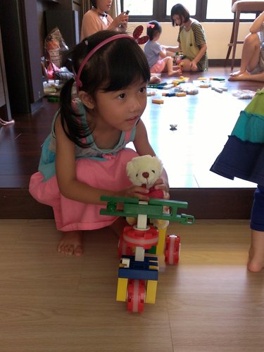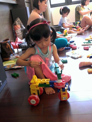 ,歐寶一聽到不用自己走路超級開心的!這次積木課主題是腳踏車,不過拔