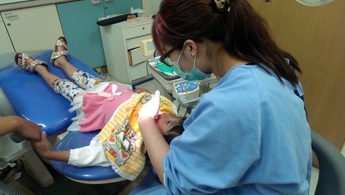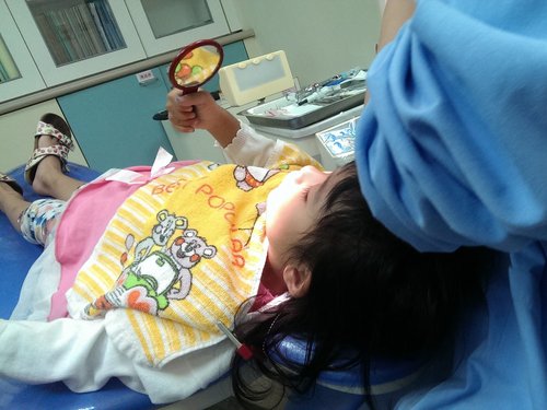 沒發出任何聲音,老實說我在一旁看醫生挖他的牙齒都有點覺得恐怖了,歐寶