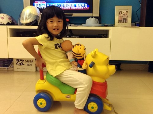 下午去Enjoyfun做黏土 ,晚上在家騎著車子載弟弟跟巧虎