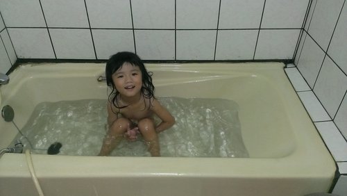 這天傍晚一就是我們兩個母女一起在大浴缸裡洗澡~歐寶愛上了一起泡澡,