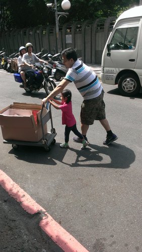 載去回收場賣,歐寶很高興,這次換的錢拔拔全部給他,我們還拿這錢去