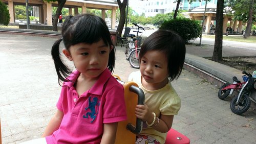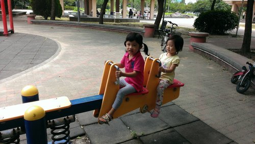 歐寶上完打擊音樂律動課後跟恩琳相約在四號公園玩