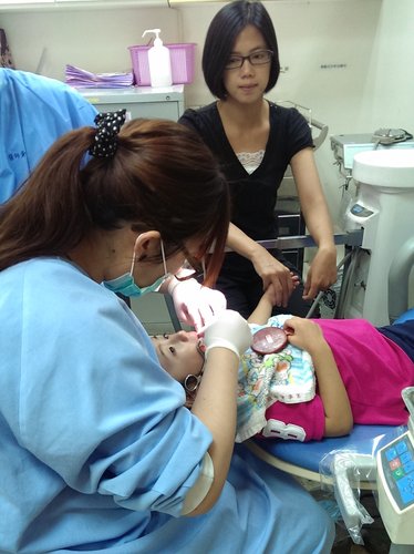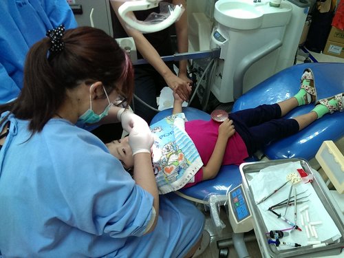 上麻藥及幫牙齒穿雨衣了,歐寶依舊很乖的躺著給趙醫師治療,醫生說歐寶