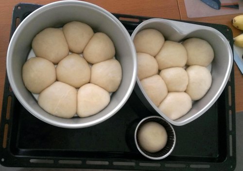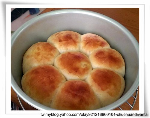 看看,剛好歐寶這幾天吵著要做麵包,於是早上跟他一起做這款養樂多餐包