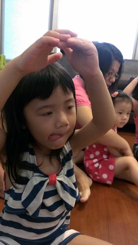 這小孩在學Q的動作~不過舌頭放錯邊囉!