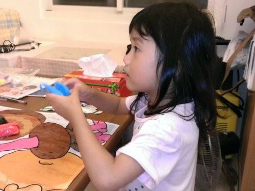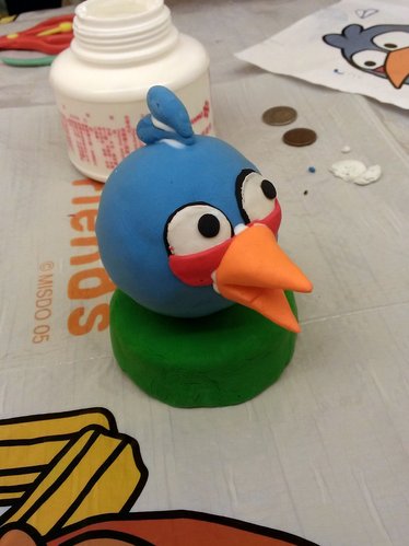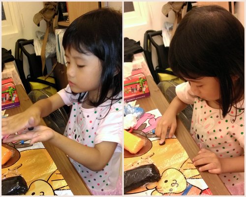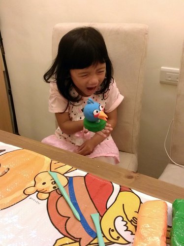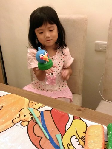 歐寶負責調顏色~將藍色跟白色混合均勻做憤怒鳥的身體