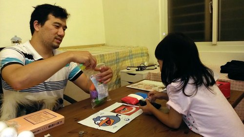做憤怒鳥之前拔拔先跟歐寶說明等會要怎麼做