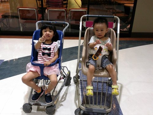 最後一個行程~在成田AEON大型購物廣場自行購物,歐寶也想跟弟弟一起坐購