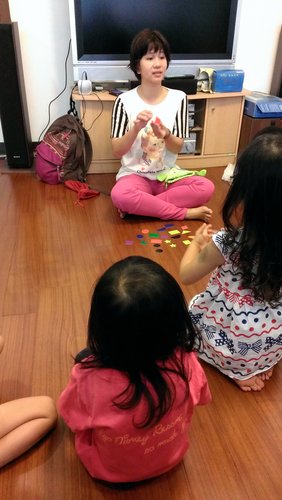 前一個星期因為在日本玩,英文課請假一堂,這天上英文課歐寶有點跟不上~