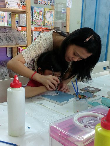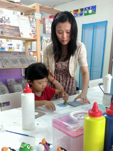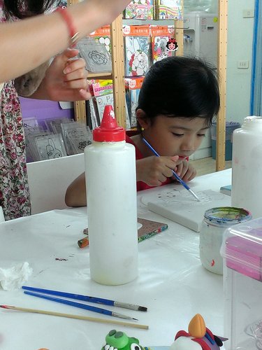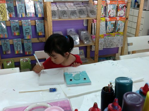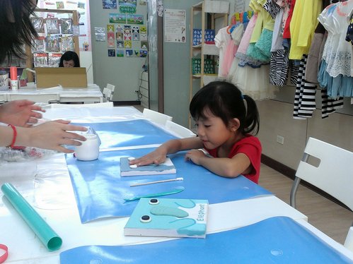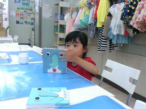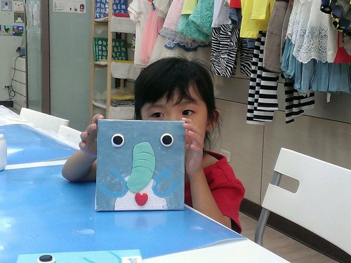 黏土,不過他臨時改變主意,想畫大象油畫~